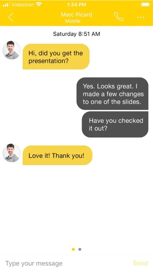The COMMcloud app for iPhone lets you enjoy all the advantages* of Videotron Business’ Cloud Communication services directly from your mobile. You get the best of both worlds: the efficiency of cloud-computing telephony and the advantage of chatting with your colleagues, wherever they may be.