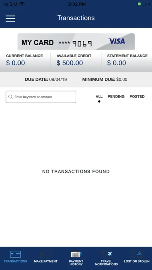 • View recent and pending transactions.