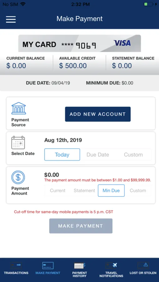 • Make a payment credit card.