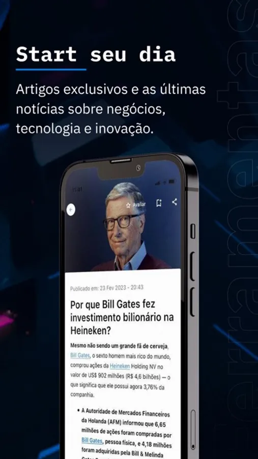 Através do nosso aplicativo, você terá acesso diário a conteúdos sobre inovação, empreendedorismo, negócios, novas tecnologias, tendências e transformação digital em primeira-mão.