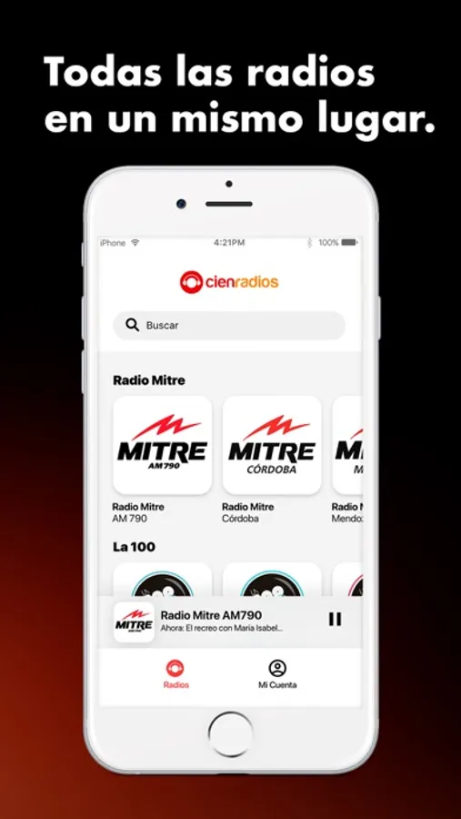 Descargá ya la aplicación oficial de Cienradios y escuchá toda la programación de Radio Mitre y La 100 en vivo estés donde estés.