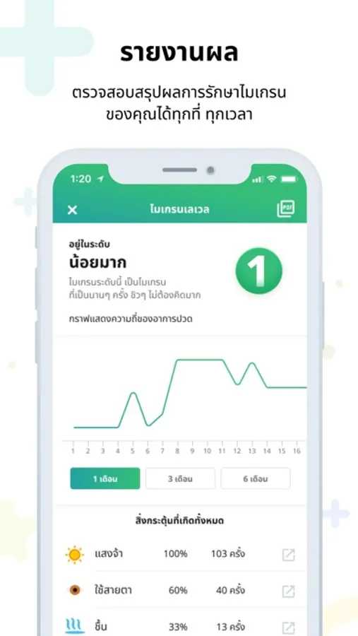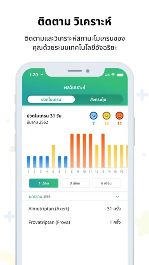 - บันทึกข้อมูลไมเกรน ยาที่รับประทาน และพฤติกรรม