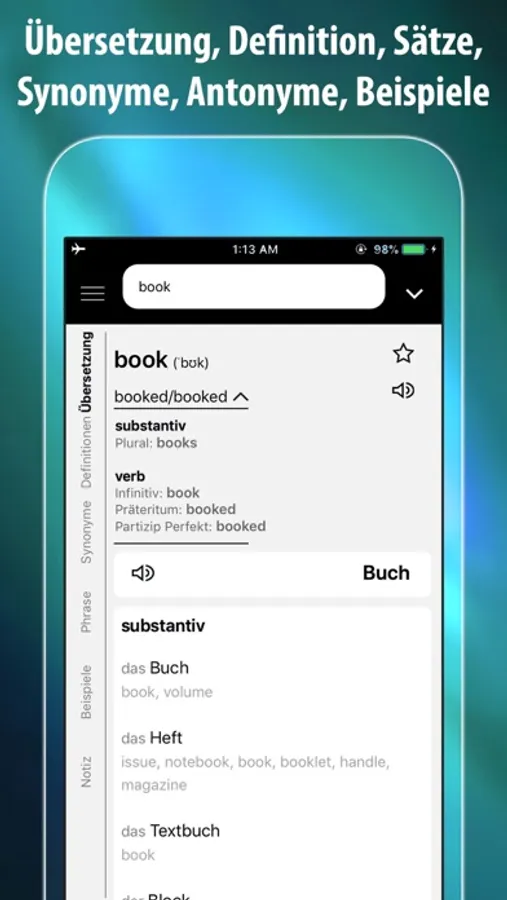 - Offline-Wörterbuch (Keine Internetverbindung notwendig)