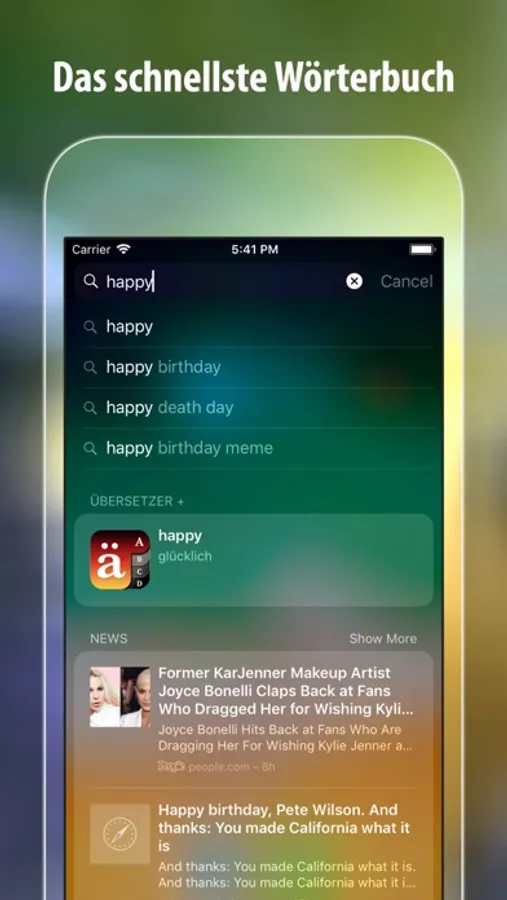 - Sofortige Übersetzung, wenn du ein Wort berührst