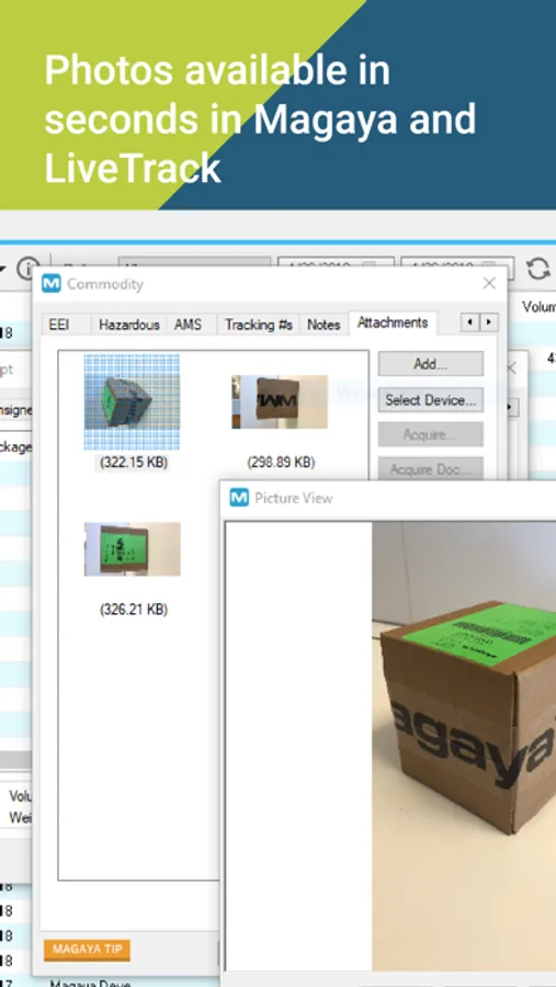 Binder is an extension to any Magaya software product and allows sending attachments directly from your phone to items or transactions in your database.