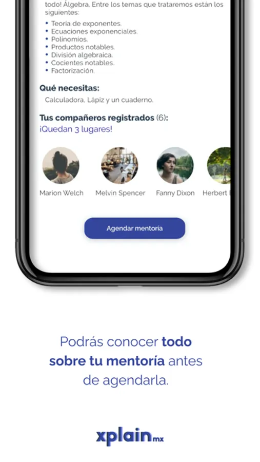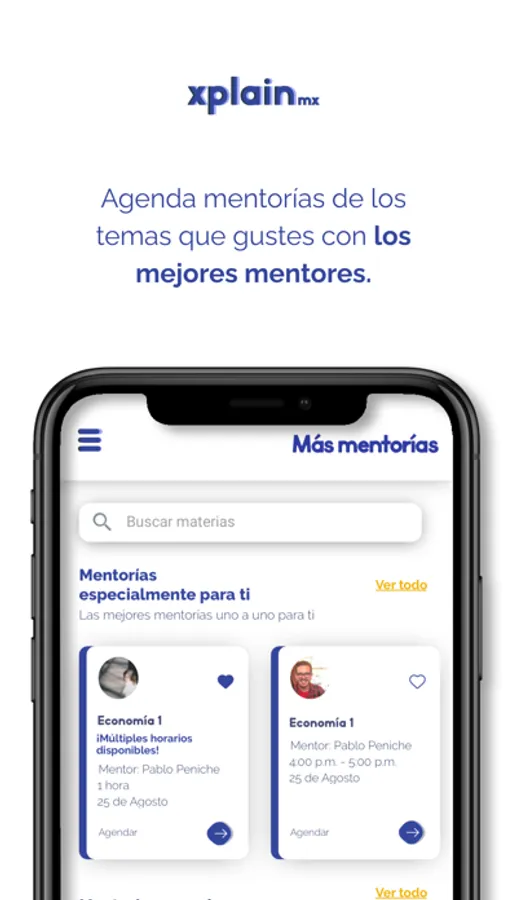 Xplain, es la nueva forma de aprender. Aquí encontrará los mejores mentores de nuestra lista de asignaturas, aquí puede contactar fácilmente, aprender y crecer con mentores de todo el mundo. Encuentre la tutoría que le guste y prográmela con un solo clic.
