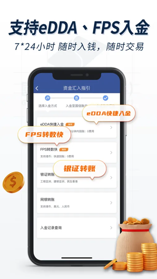國信香港現提供eDDA, FPS轉數快、銀證轉賬等存款方法,0手续费,极速到账,7*24入金。