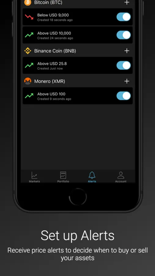 Set price alerts for any crypto asset and get notified when it is the right time to jump into the market.