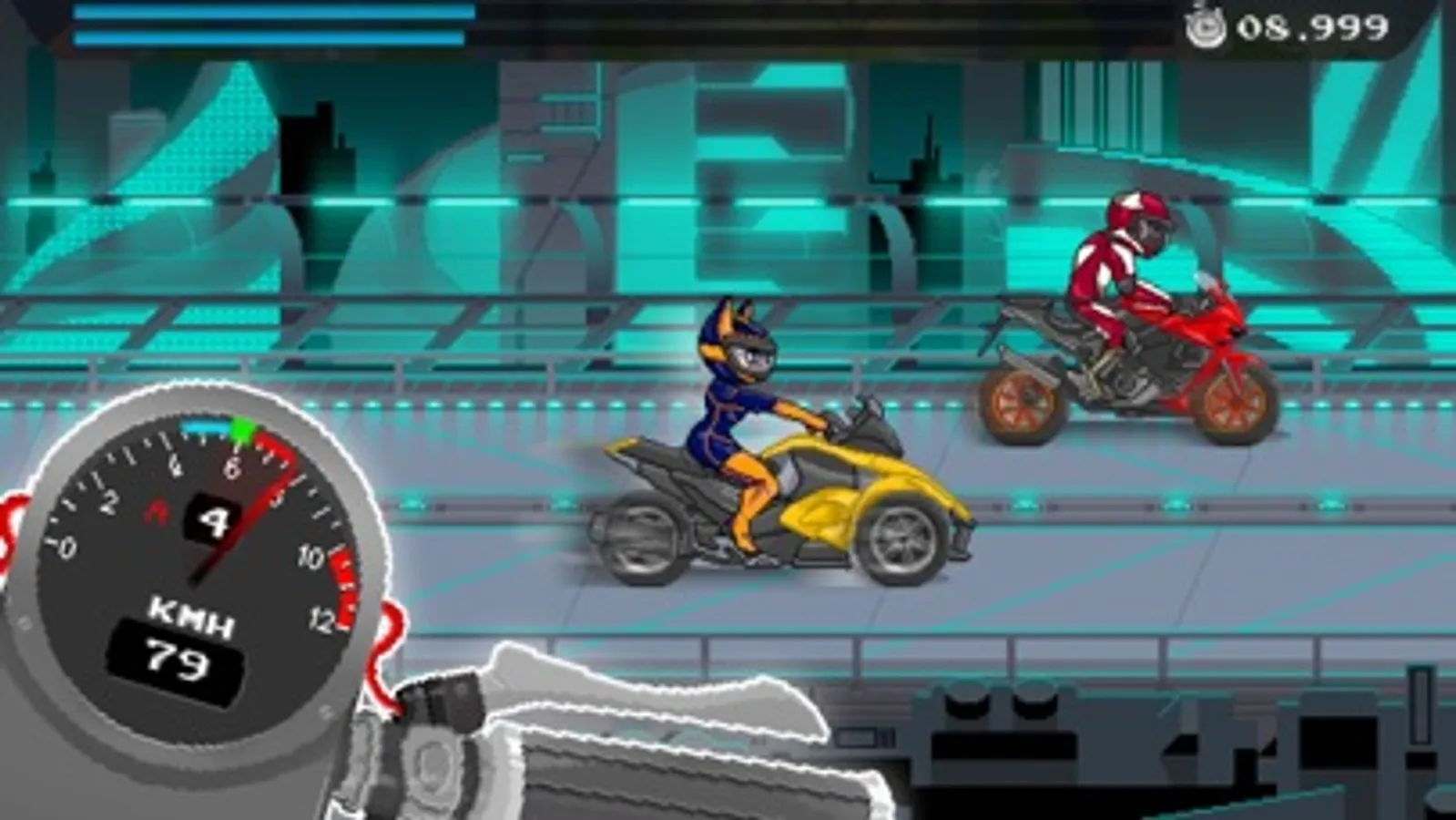 Do you like moto, racings and retro games ? Yes, then MOTO QUEST BIKE RACING is made for you. It's a really fun moto-racing game like a DRAG RACING game in which you race against several opponents, you upgrade and repair your moto, and you can unlock and buy new motorbikes. MOTO QUEST BIKE RACING is a great game, that will make you play for hours.