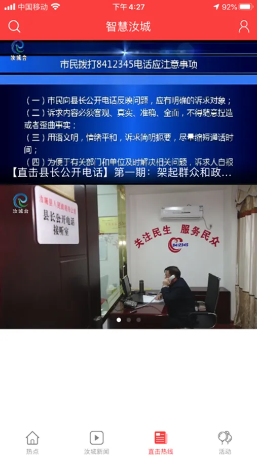 “智慧汝城”客户端是由汝城县广播电视台,立足全县而创办的新媒体平台,客户端充分发挥了汝城县广播电视台的权威的、独家的新闻视频资源优势,与手机终端随身性便携性等诸多优点有机结合,运用成熟的网络播放、直播系统,为广大网民提供新闻、视频、资讯、教育、便民等互联网服务,“智慧汝城”客户端的上线,开启了汝城县广播电视台新媒体创新发展的新征程。