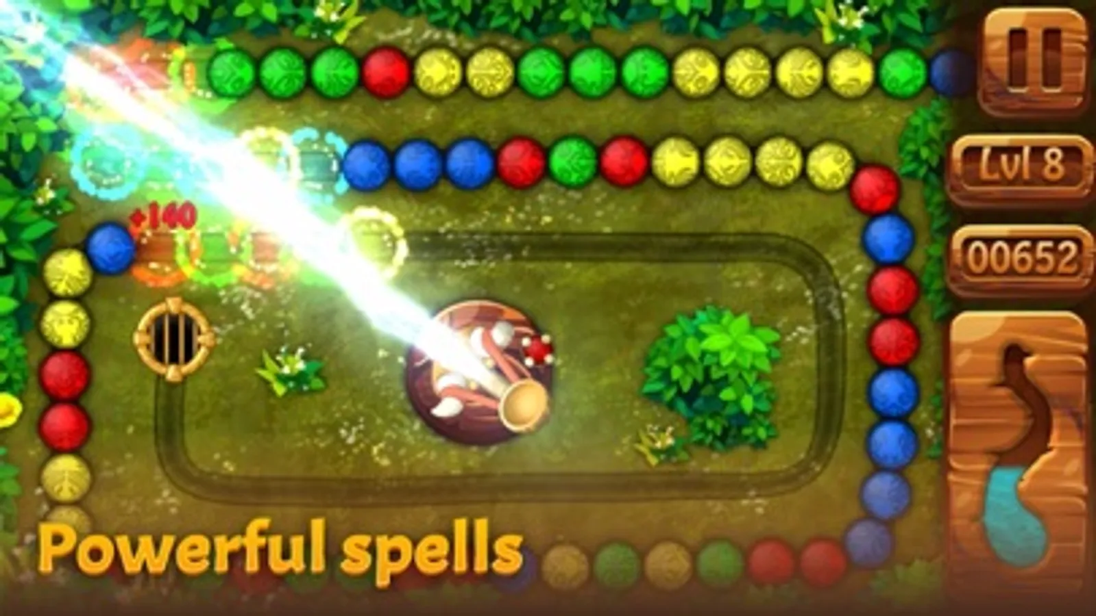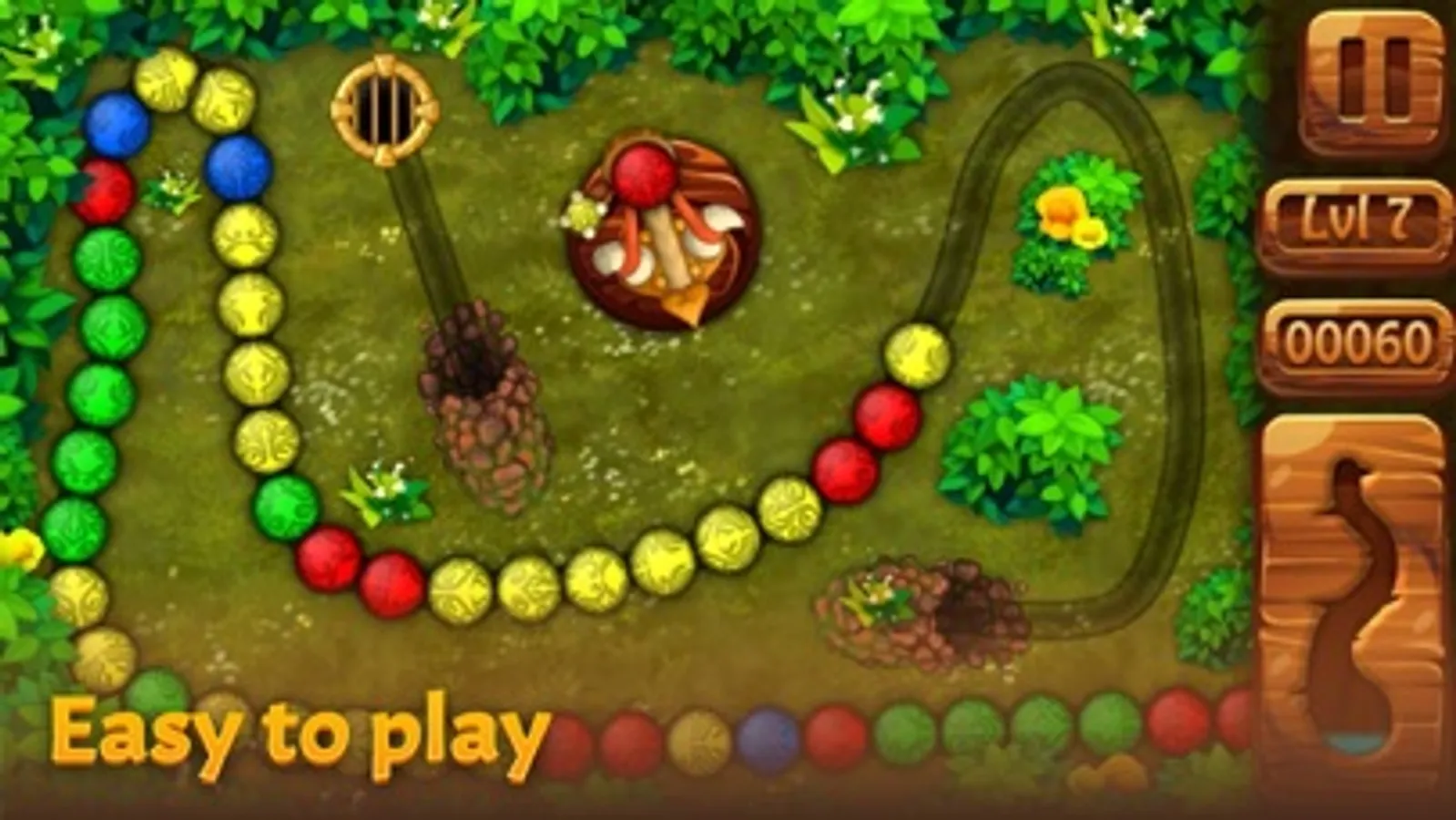 In this game you need to control the ballista, shoot multi-colored balls. Shoot the balls of the same color as yours, explode 3 or more balls of the same color and the chain will explode! You always have one extra ball, just tap on the ballista to swap the balls.
