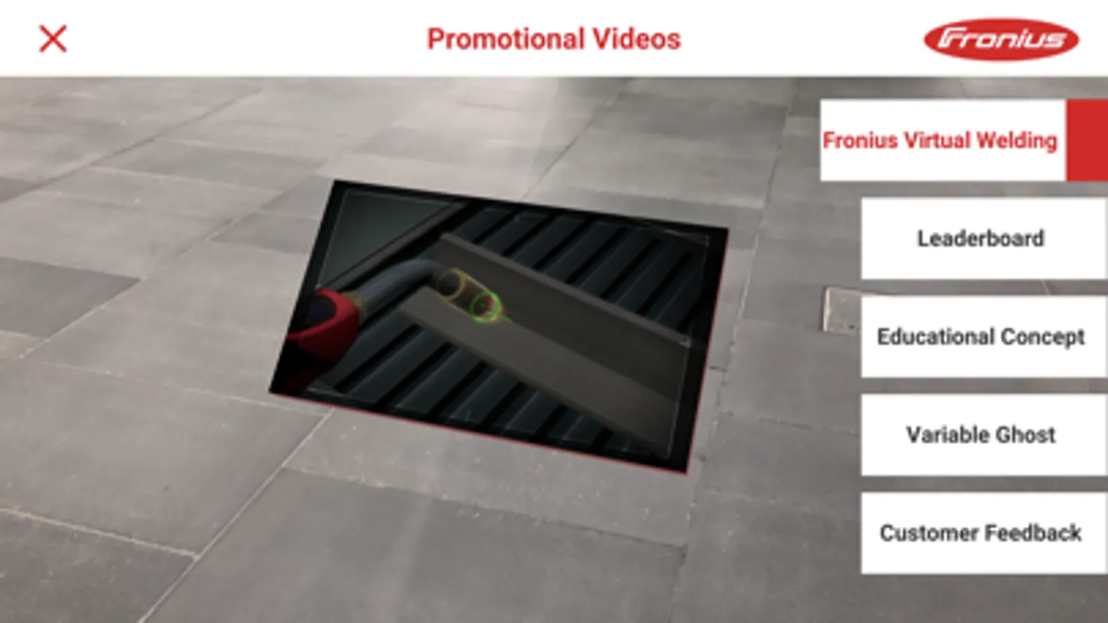 This App, available free of charge, easily combines presentation and information with fun. Using an augmented reality (AR) application, it is possible to show content like videos on Virtual Welding, 3D simulations of welding processes as well as explanations of the main benefits of virtual welding training on an flat surface. Markers for tracking are no longer required. VirtualWelding AR works with any device supporting ARCore respectively ARKit as well as Vuforia software solution.