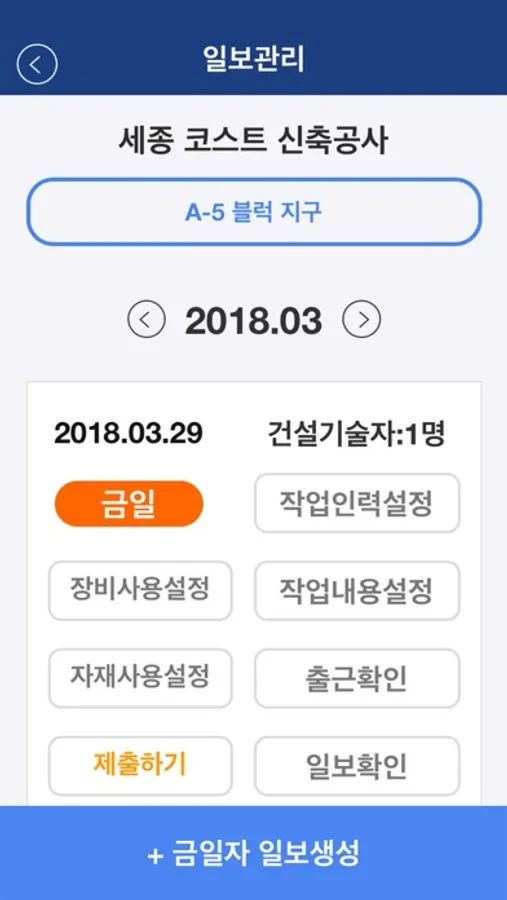 - 일별 인력설정 (출퇴근 근태 관리용)