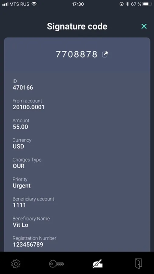 - Generate payment-based one-time password for signing a payments into web-bank (MAC)
