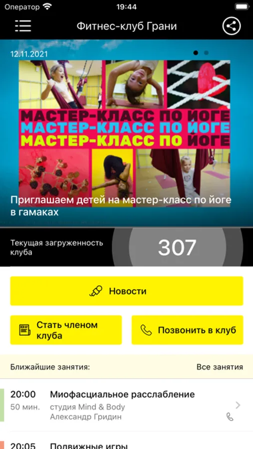 С помощью приложения вы можете следить за новостями, расписанием клуба, оперативно получать информацию об изменениях в расписании и специальных предложениях.