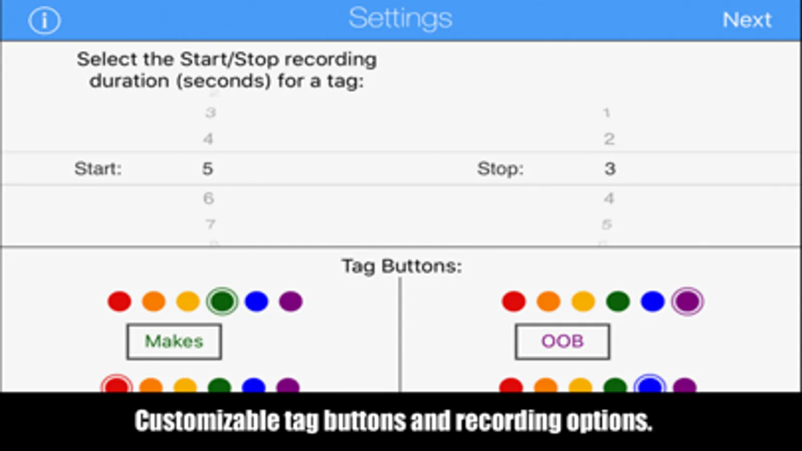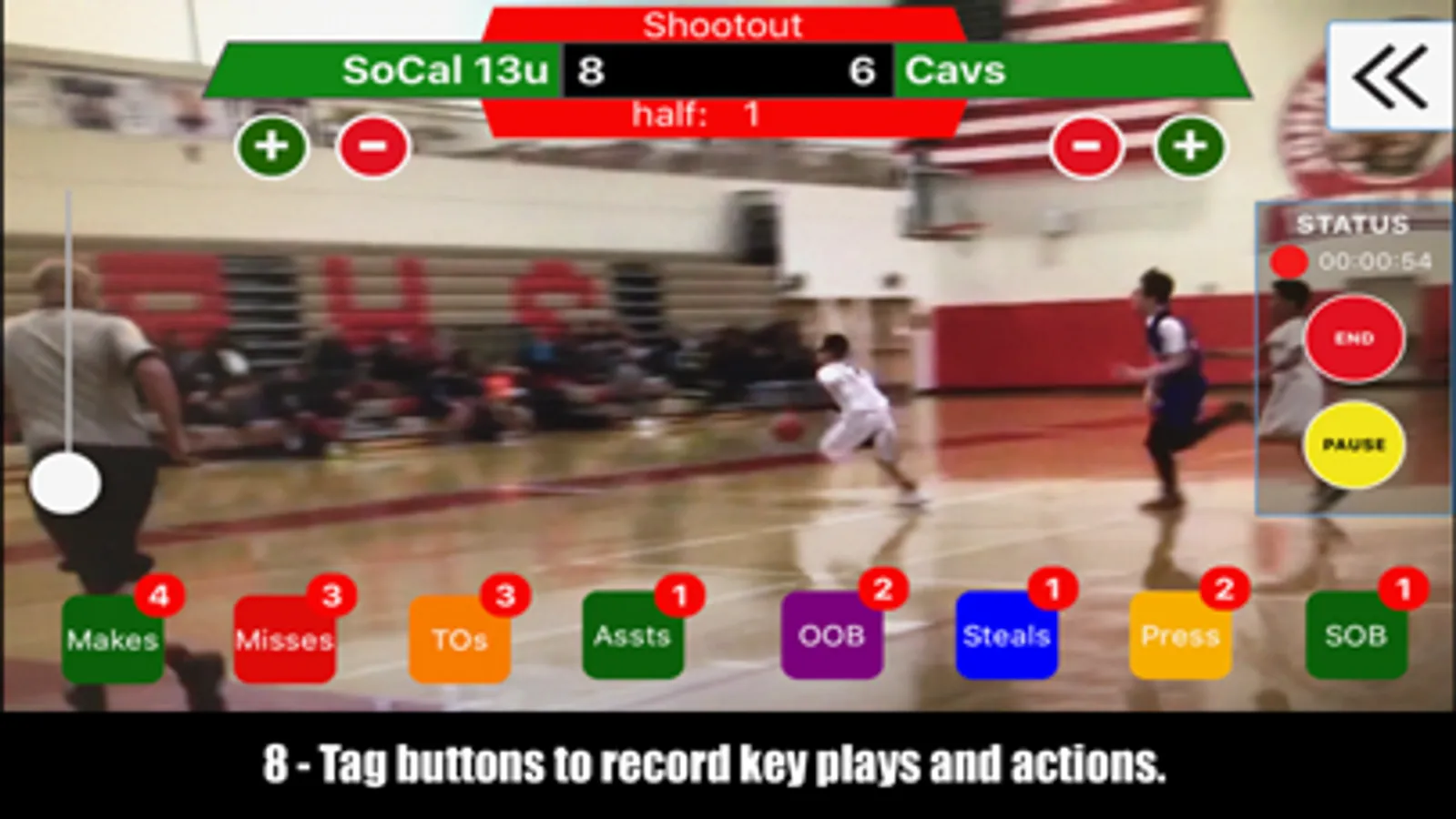 Tap Reels includes patent pending technology to offer EIGHT customizable tag buttons, allowing you to create multiple separate highlight reels at the same time. For example, while a recording a basketball game, you can set the tag buttons for points, rebounds, assists, steals, turnovers, misses, blocks, and charges. Once the live action occurs, simply tag the video to capture the sequence. For football, you may set the tag buttons for touchdowns, pass deflections, interceptions, sacks, and field goals. Be creative and tag the videos you want for ANY sport, ANY team, and ANY athlete.