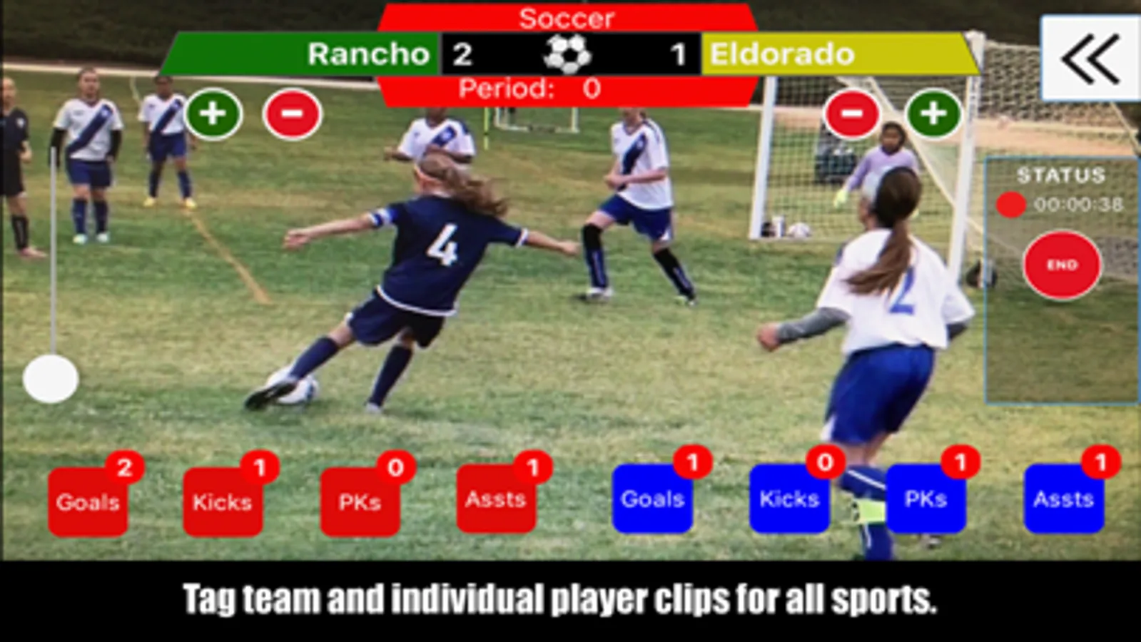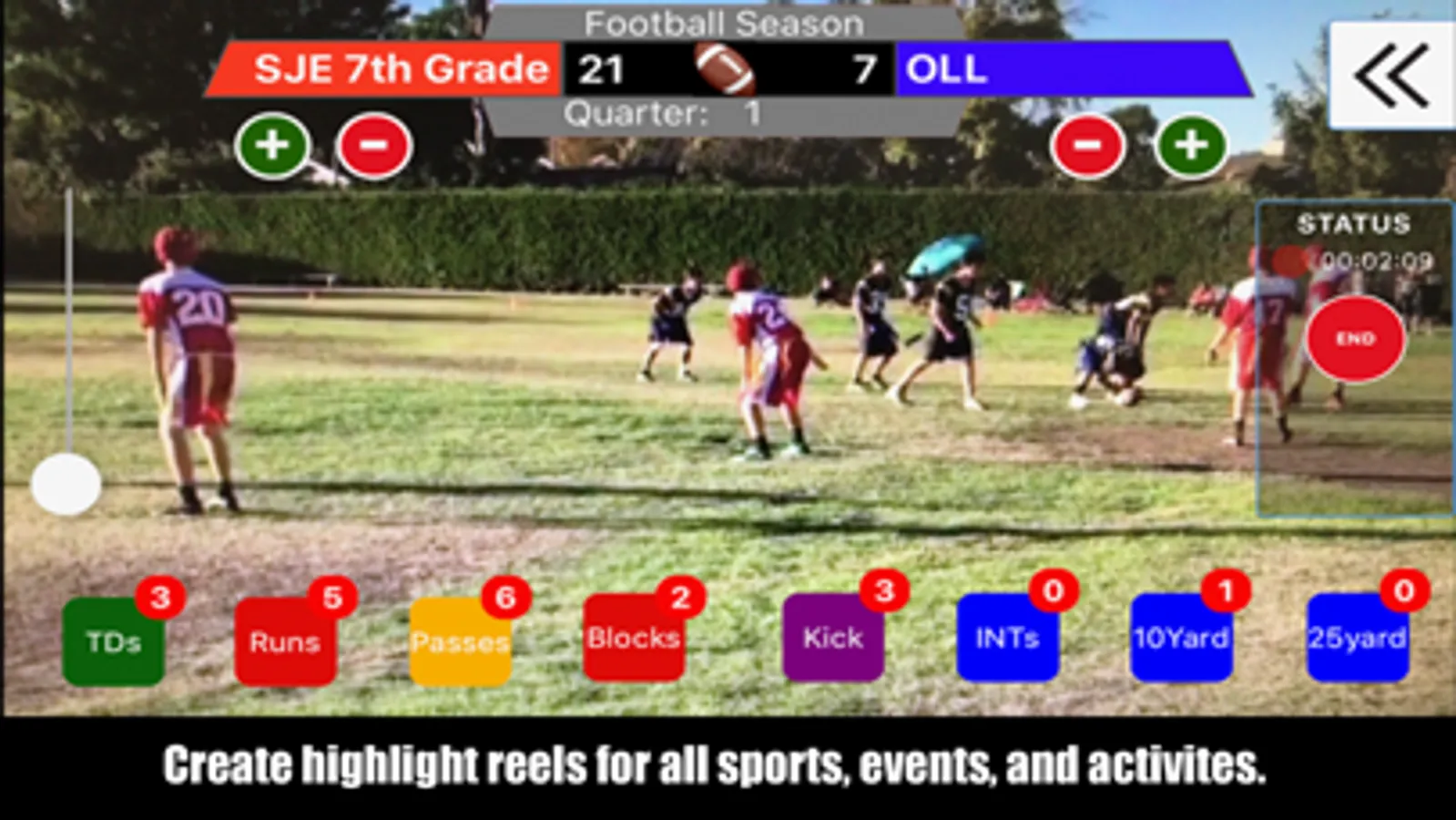 With Tap Reels - Studio Edition, create your highlight reels in real-time with 3 flexible options to TAG YOUR VIDEOS directly from 1) the live camera on your iOS device, 2) video files saved in your photo library, and 3) online videos from Vimeo, YouTube, and Google drive. You no longer have to edit and cut unwanted video from the original video footage. While recording the game, tag the clips you want included in the highlight reels using the 8 tag buttons. That's right, EIGHT tag buttons for EIGHT times the fun. It's like having eight video cameras recording at different times. The BIG BONUS? There's an integrated scoreboard to keep track of all team scores.