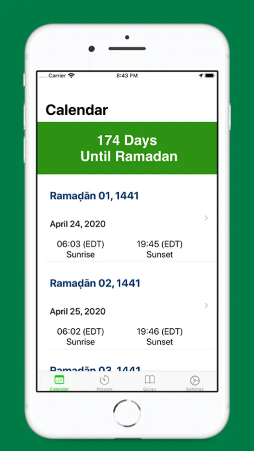 - Ramadan Calendar: See each calendar date in Hijri and Gregorian dates - alongside prayer times for that day. You can even see how many days until Ramadan or what day of Ramadan it is when the month starts.