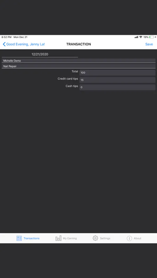 -View total earning & tips for daily, weekly, bi-weekly, monthly & annually