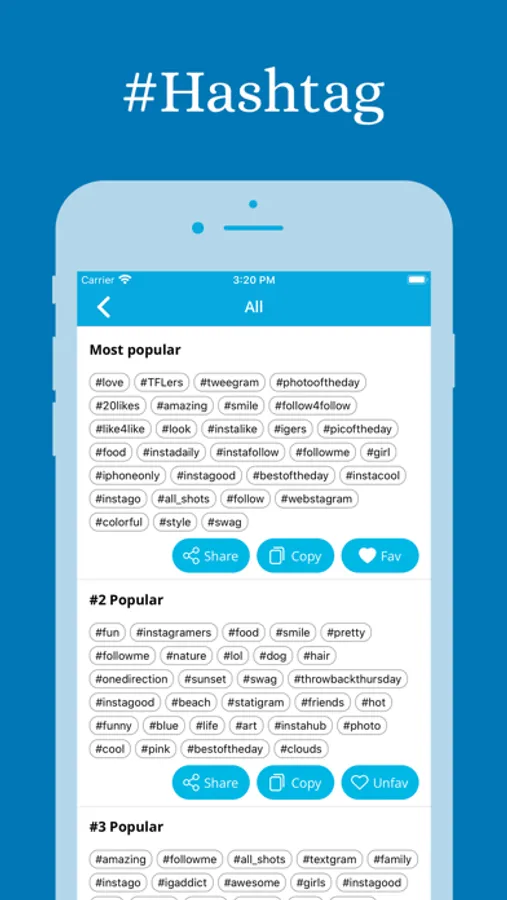 - Copy the hashtags you want to use with just one tap.