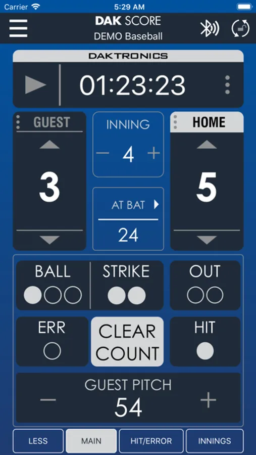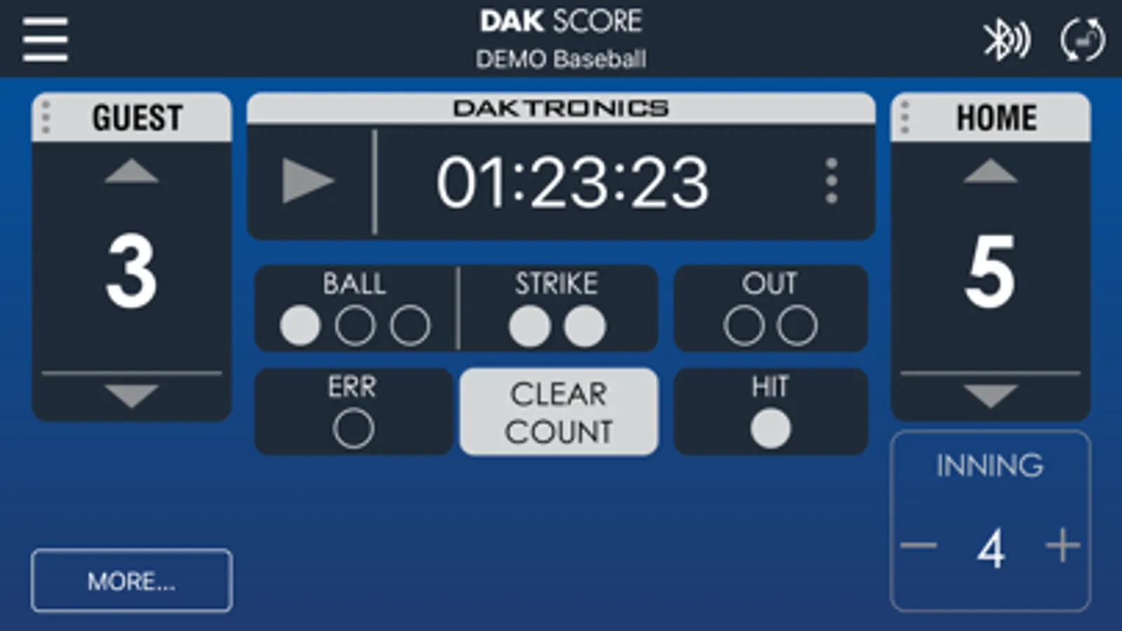 Use your mobile device to control select Daktronics scoreboards. An All Sport MX-1 interface box with hardwired connection or wireless radio signal to the scoreboard is required. Contact Daktronics for more information.