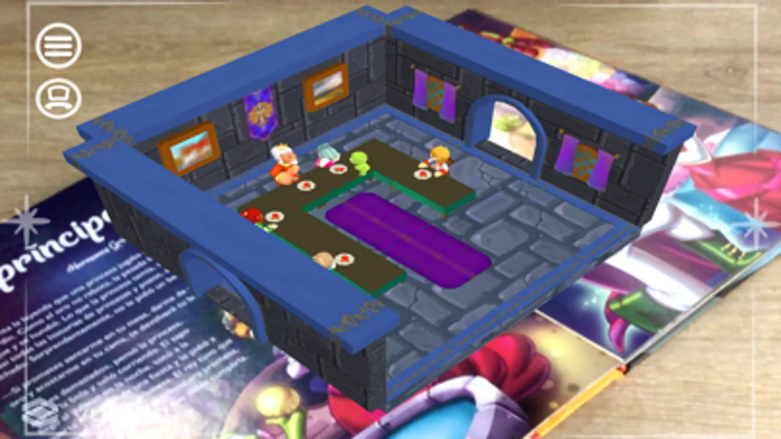 Sobreponiendo tu celular en las páginas en las que veas el símbolo de realidad aumentada (RA), podrás interactuar, jugar y ver los cuentos en realidad aumentada.