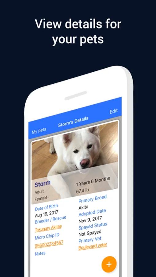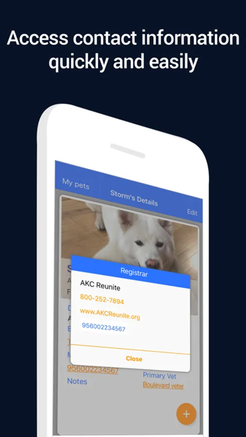 Store key contacts like vets, pet sitters, groomers and breeders.
