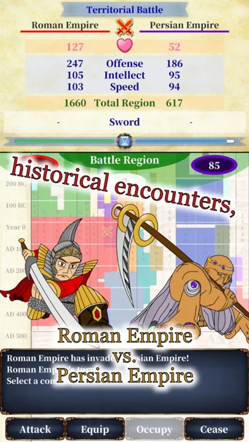 You become one of the kingdoms/empires that existed in the Eurasia world between 500 BC - 500 AD, and aim to unite the world history.