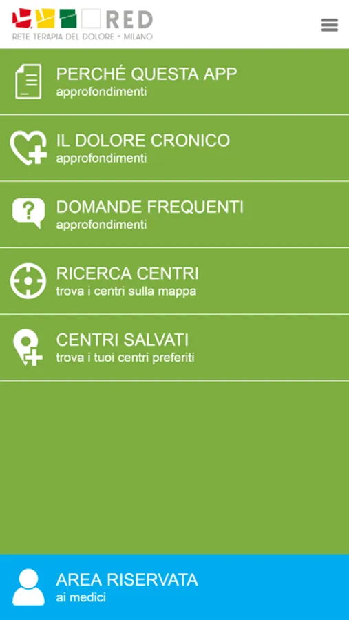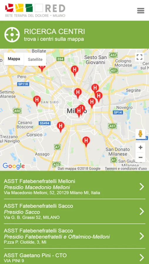 La rete locale della terapia del dolore di Milano, RED-Milano, è nata nel 2017 dopo due anni di intenso lavoro. Il network include 9 centri di terapia del dolore della città e la ASST Grande Ospedale Metropolitano Niguarda ne rappresenta l’hub. Oltre alle strutture operative, la rete comprende la ATS Milano Città metropolitana, l’Ordine dei Medici di Milano e le associazioni dei malati con dolore. Il primo obiettivo di RED è consentire un accesso appropriato dei pazienti in carico ai medici di medicina generale ai centri di terapia del dolore in base ai propri bisogni assistenziali algologici e il secondo è migliorare la qualità delle cure attraverso la definizione di protocolli e percorsi di cura per le principali sindromi dolorose. Dopo un anno di lavoro in RED, è emersa la necessità di creare uno strumento che favorisse sia l’orientamento alle cure algologiche dei malati, sia un contatto diretto dei medici di medicina generale con i centri del dolore. Per perseguire tali obiettivi l’hub di Niguarda, insieme ai centri della RED e a un team di studenti del Politecnico di Milano, ha ideato una applicazione per dispositivi mobili.