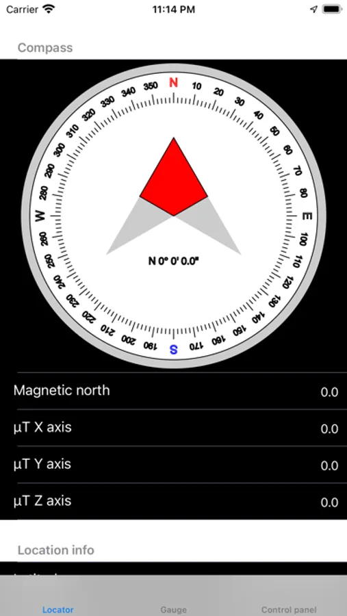 This application allows to detect the main information on the position of the device expressed in geographical coordinates and orientation to the north expressed in angular measurements.