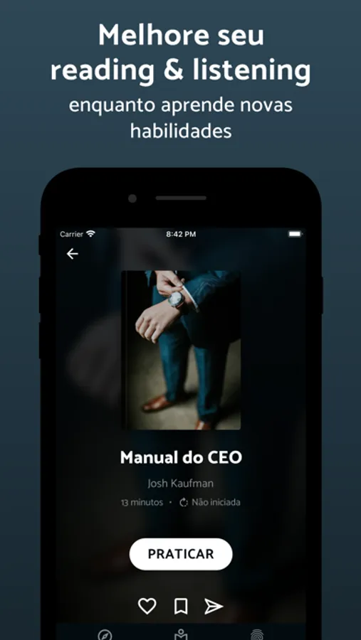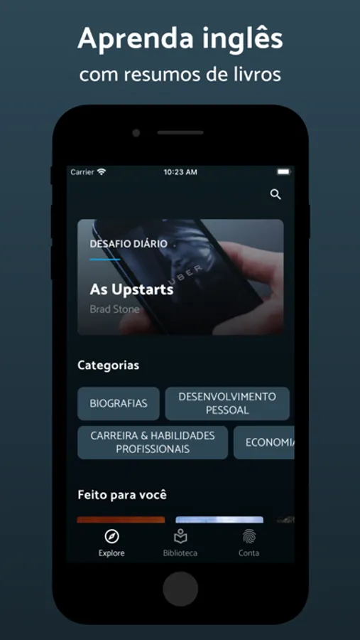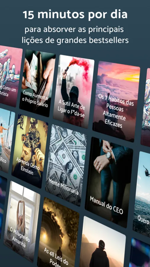 Em nosso aplicativo você terá acesso a resumos de livros nos formatos de áudios e textos em inglês com a tradução sincronizada e poderá praticar seu reading e listening no idioma inglês aprendendo sobre sobre empreendedorismo, investimentos, produtividade, inteligência emocional, negócios, vendas, psicologia, saúde, história, filosofia e muito mais.