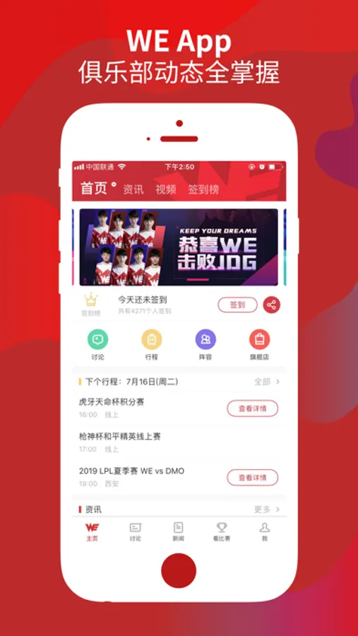 这是WE电子竞技俱乐部官方授权APP,为喜爱WE战队的你提供了最快最全的队员动态、电竞资讯,以及专业的赛事数据,并有WE战队队员和你亲密互动,还有超多战队专属福利等你拿!快来加入WE粉丝的家!
