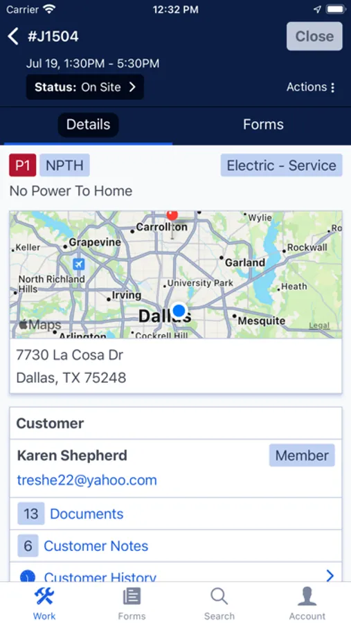 The CertainPath app allows technicians to be dispatched to jobs, view information about their jobs, summarize their work with debriefs, and create invoices from the field.