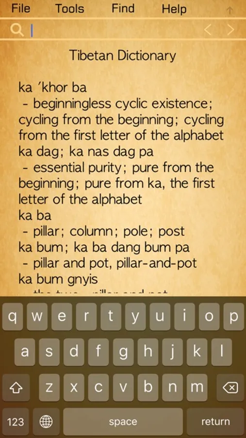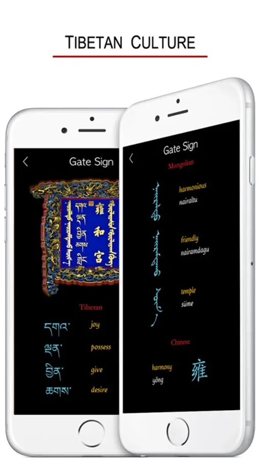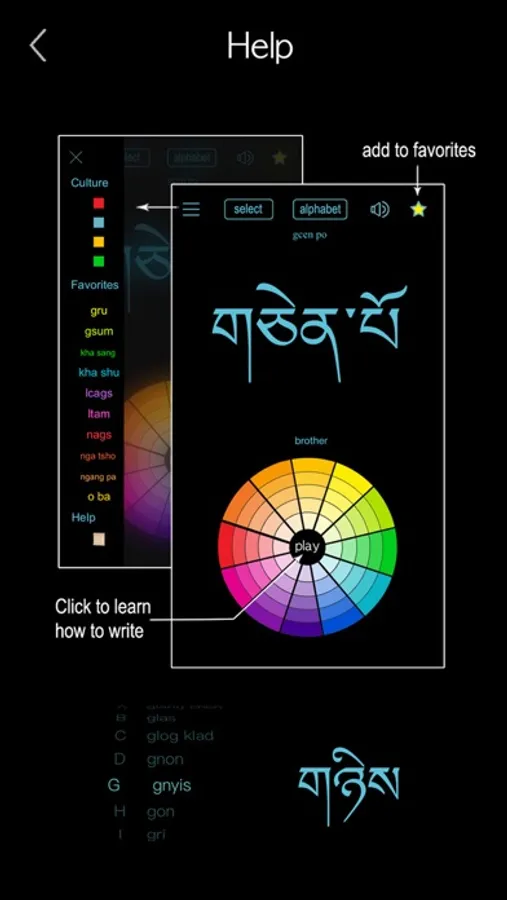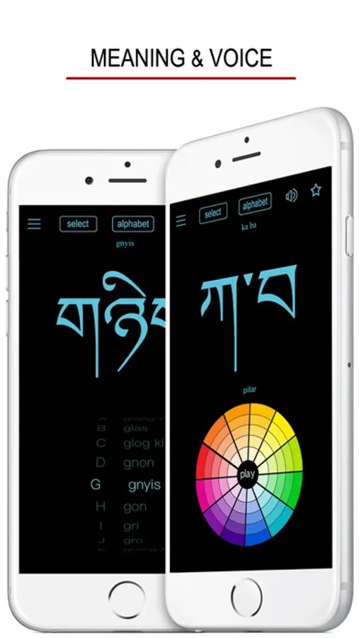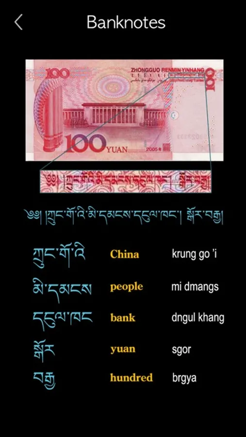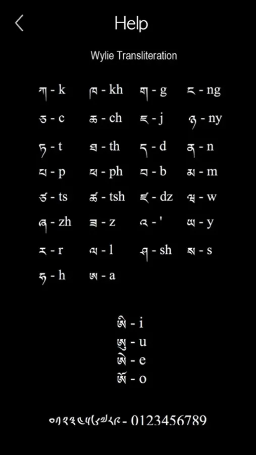 The App uses the Wylie transliteration system. It has become a standard transliteration scheme in Tibetan studies.