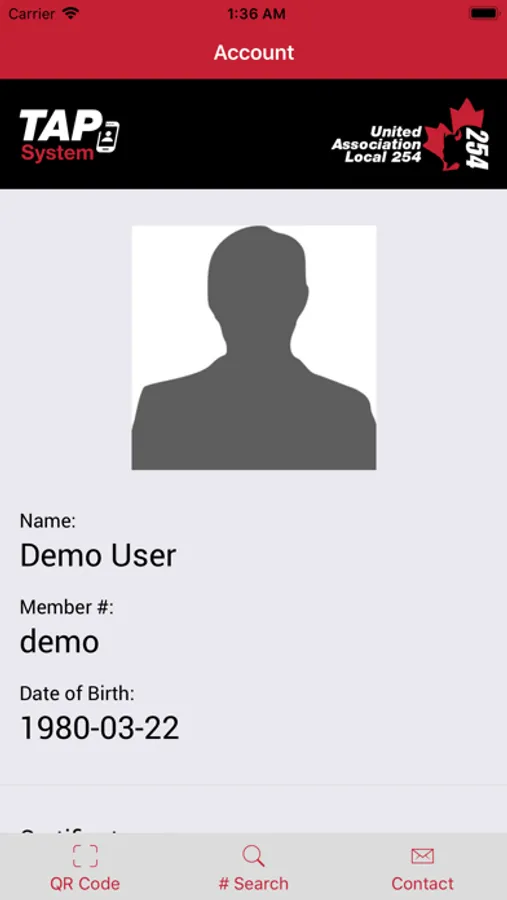 Users can scan UA254 member cards to see a member's up to date certification information instantly. Users also have the option of entering UA254 member numbers to see a member's certification information and forward that information to relevant workplace contacts.