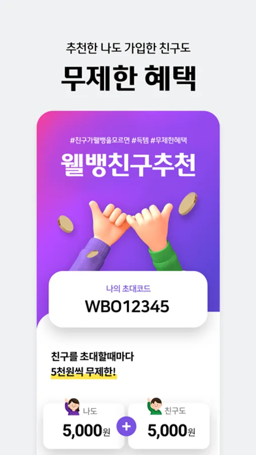 · 웰뱅워킹 : 대출고객대상은 걸으면 매일 최대 100원, 매월 최대 3,000원의 혜택을 드려요