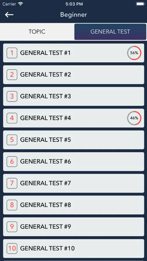 The test is divided into two levels with 60+ topics & 100+ general test.