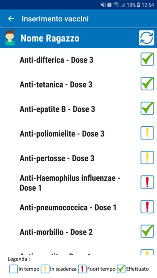 - Calendario individuale preciso con le date dei vaccini e dei richiami