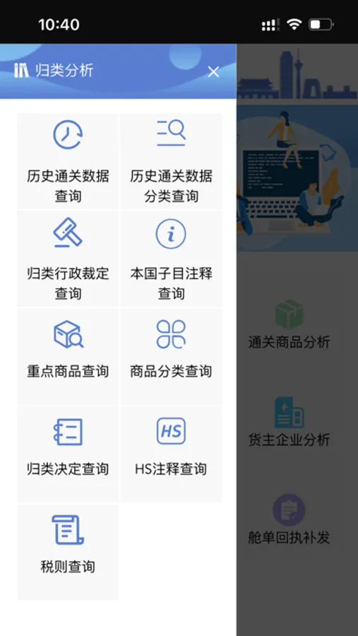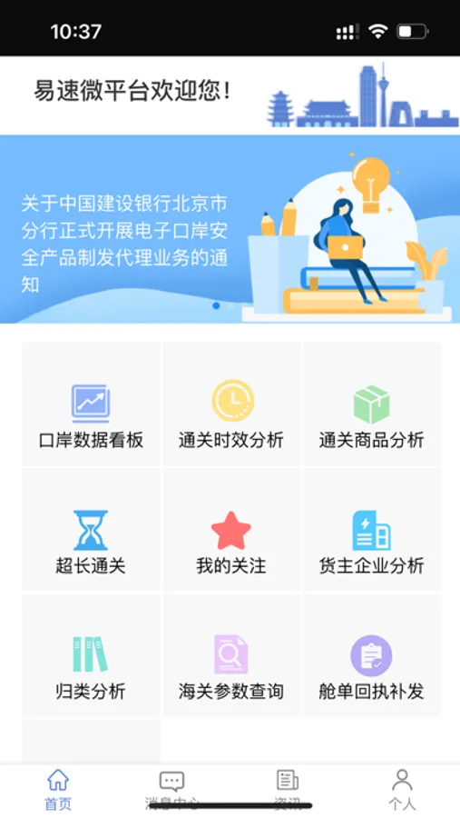 本应用中包含有政务信息通告、企业通关数据查询与实时统计、用户故障报修、通关业务申请等业务应用。可以让用户了解到最新的新闻资讯、行业动态及政府公告。通关业务应用包含大量丰富的通关数据查询功能和实用小工具,并进行了妥善的分类归纳整理。