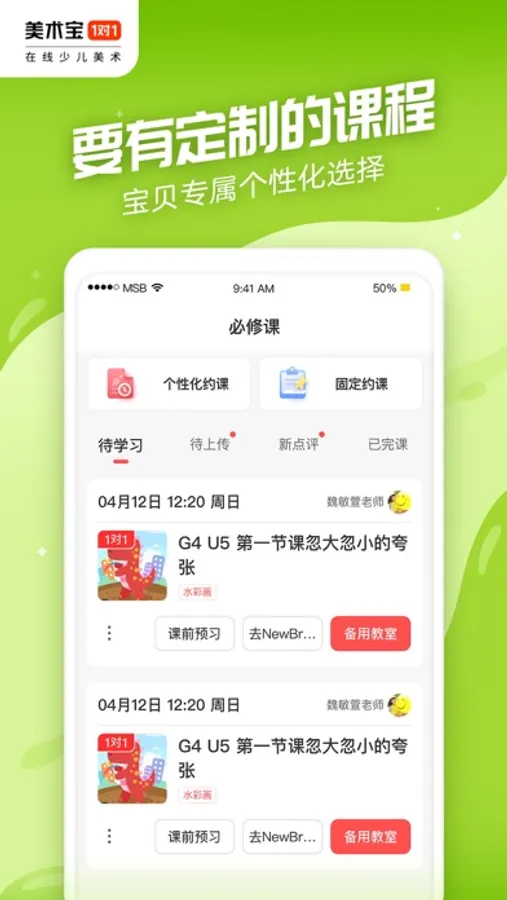 美术宝1对1通过1对1在线视频的方式,让孩子在家就能学画画,帮助孩子有效学习和掌握画画能力和技巧,提升孩子的对事物的审美和美术的应用。