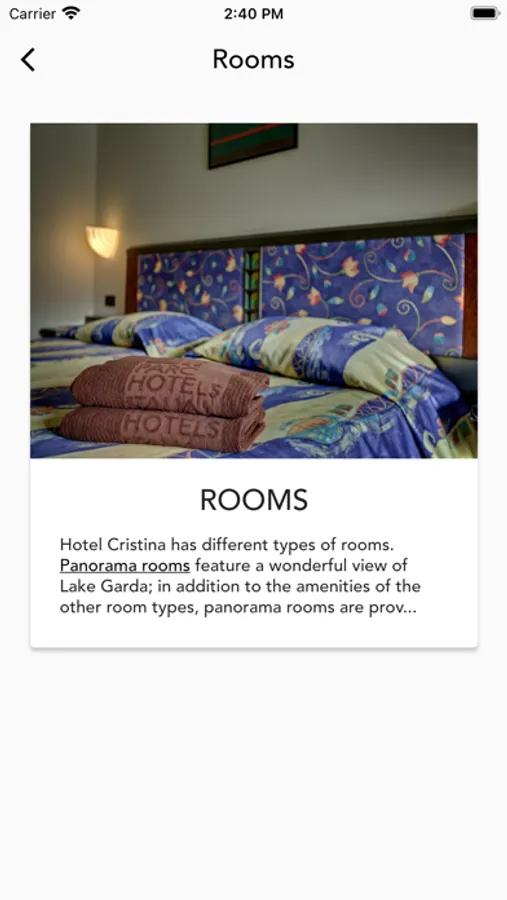 You will stay in spacious and cosy rooms, fitted with all the amenities: satellite TV, minibar, private bathroom. Many rooms also have a balcony; some of them also have a view of Lake Garda.