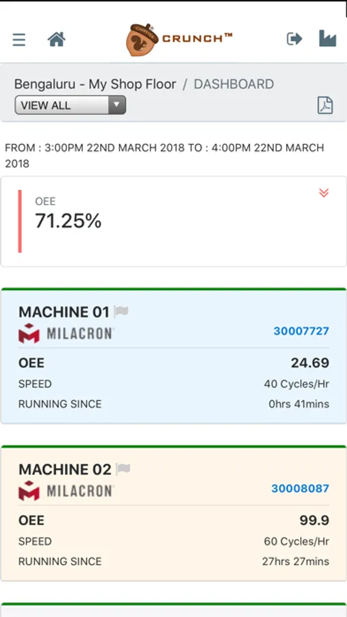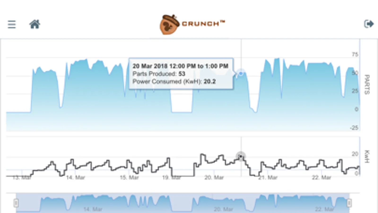 The CRUNCH IIoT (Industrial IoT) app allows you to monitor your machine and shop floor performance from anywhere in the world!