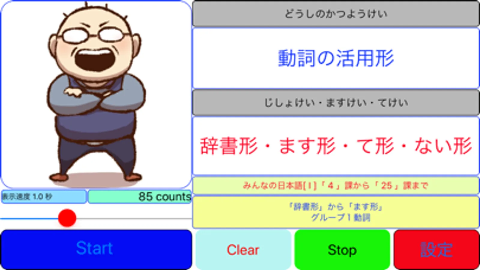 ・動詞は「みんなの日本語 初級I」の4課から25課までをベースとしており、157語収録しています。データを編集することにより対応可能ですので、間違いがあったらメールで教えて下さい(^^)/