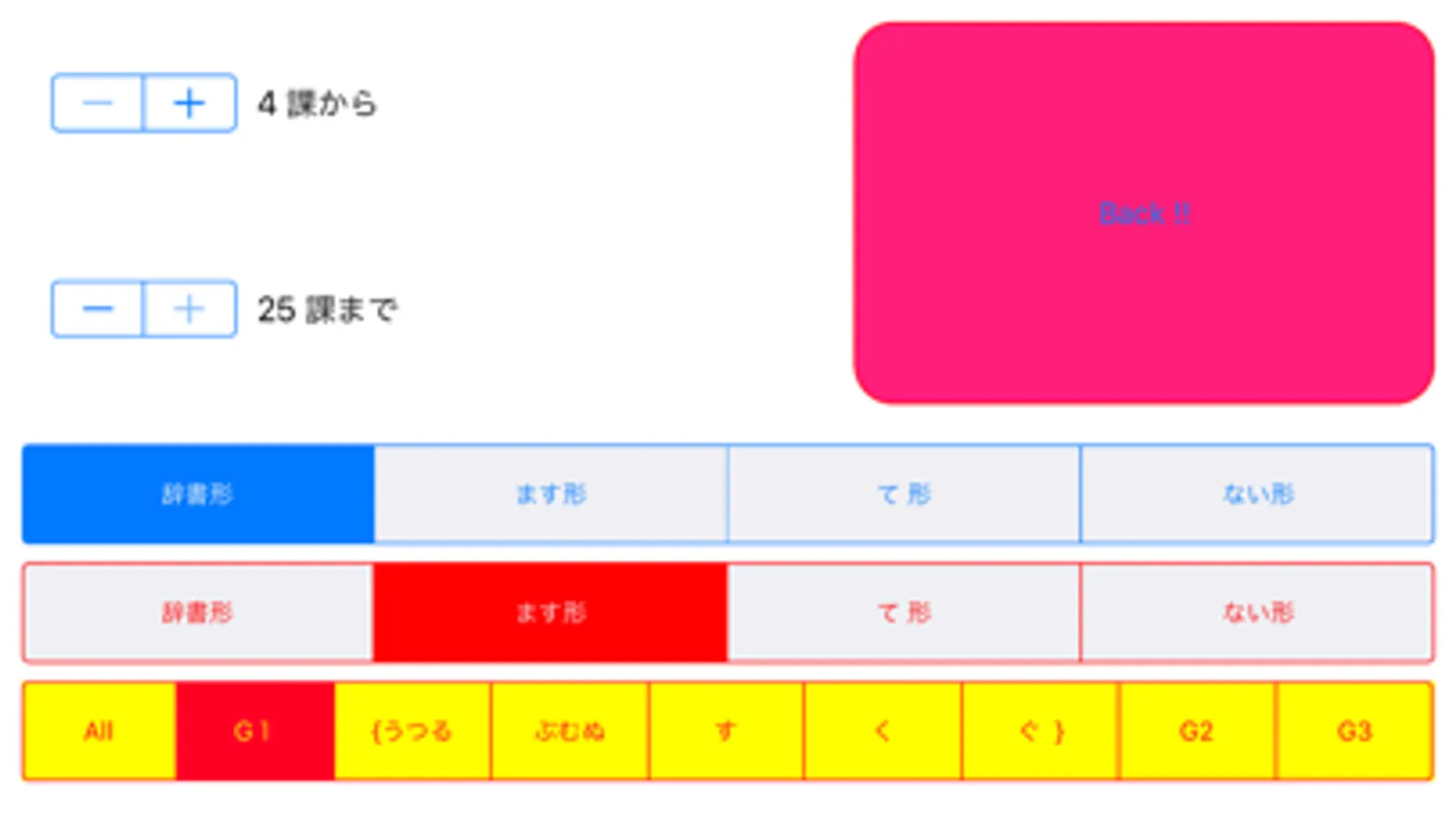 ・練習したい課の範囲を決めることができます。5課だけ、9課だけのように設定することもできます。