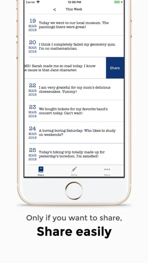 Easily share your diary entries if you want, and if you don't your entries are guaranteed to be secure.