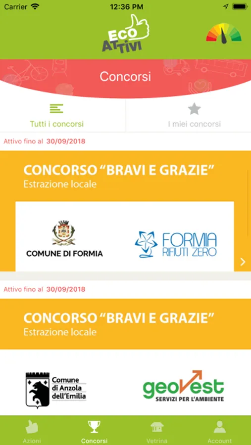 EcoAttivi è una community che ti propone azioni, quiz, test, missioni in campo ambientale per mettere alla prova i tuoi stili di vita, migliorare le tue abitudini e maturare punti. L’app e il suo utilizzo è completamente gratuito. Su EcoAttivi puoi trovare concorsi con fantastici premi e opportunità riservate ai cittadini sostenibili. Scarica l’app, registrati, controlla le azioni premiate, partecipa ai quiz settimanali, condividi le tue esperienza e matura punti.