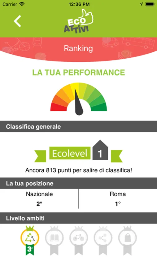 EcoAttivi tiene traccia anche delle tue performance e aggiorna un indicatore personalizzato con il trend della sostenibilità delle tue attività.
