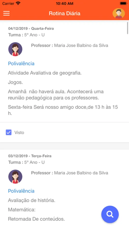 Sem o uso da tradicional agenda de papel, os Professores lançam as informações dos alunos por meio de qualquer dispositivo móvel com acesso a internet: Mensagens, Rotina diária, Eventos coletivos e individuais, entre outros.