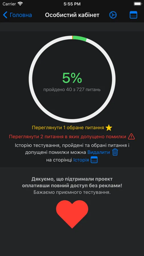Програма працює в режимі оффлайн, а тому для навчання в програмі чи проходження тестування підключення до Інтернету не потрібне.