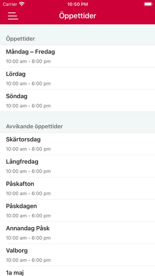 - Öppettider